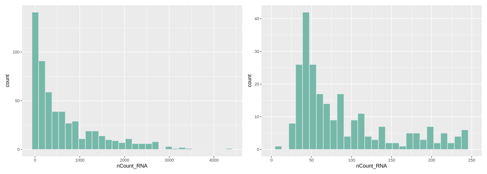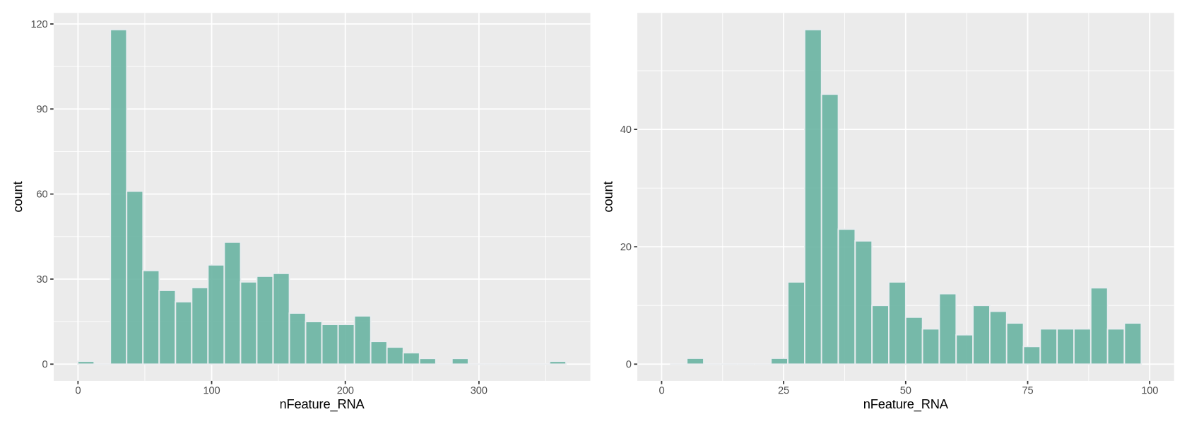 plot2 <- ggplot(data@meta.data, aes(x=nFeature_RNA)) +