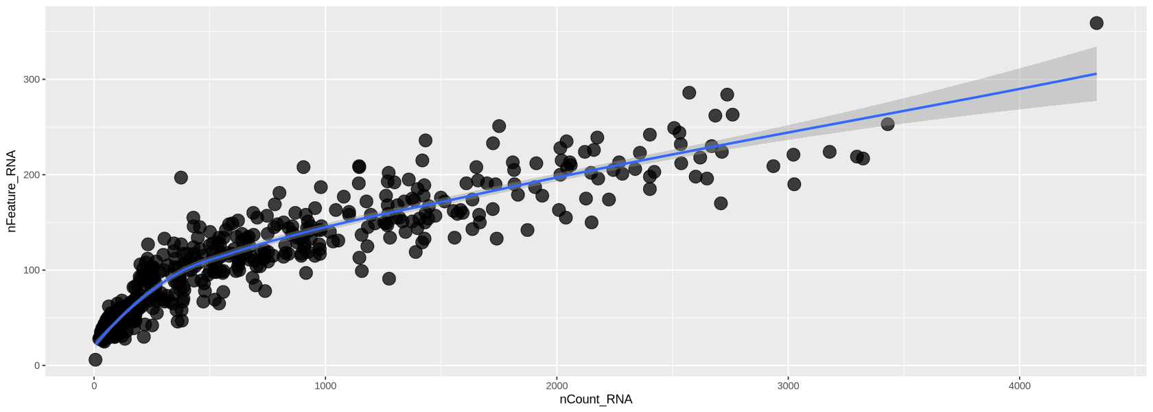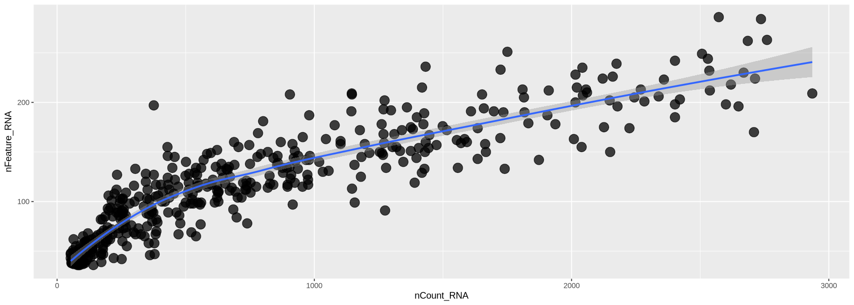 plot1 <- ggplot( dataFilt@meta.data, aes(x=nCount_RNA, y=nFeature_RNA)) +