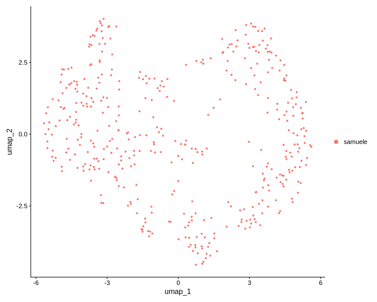 ..@ active.ident: Factor w/ 1 level "samuele": 1 1 1 1 1 1 1 1 1 1 ...