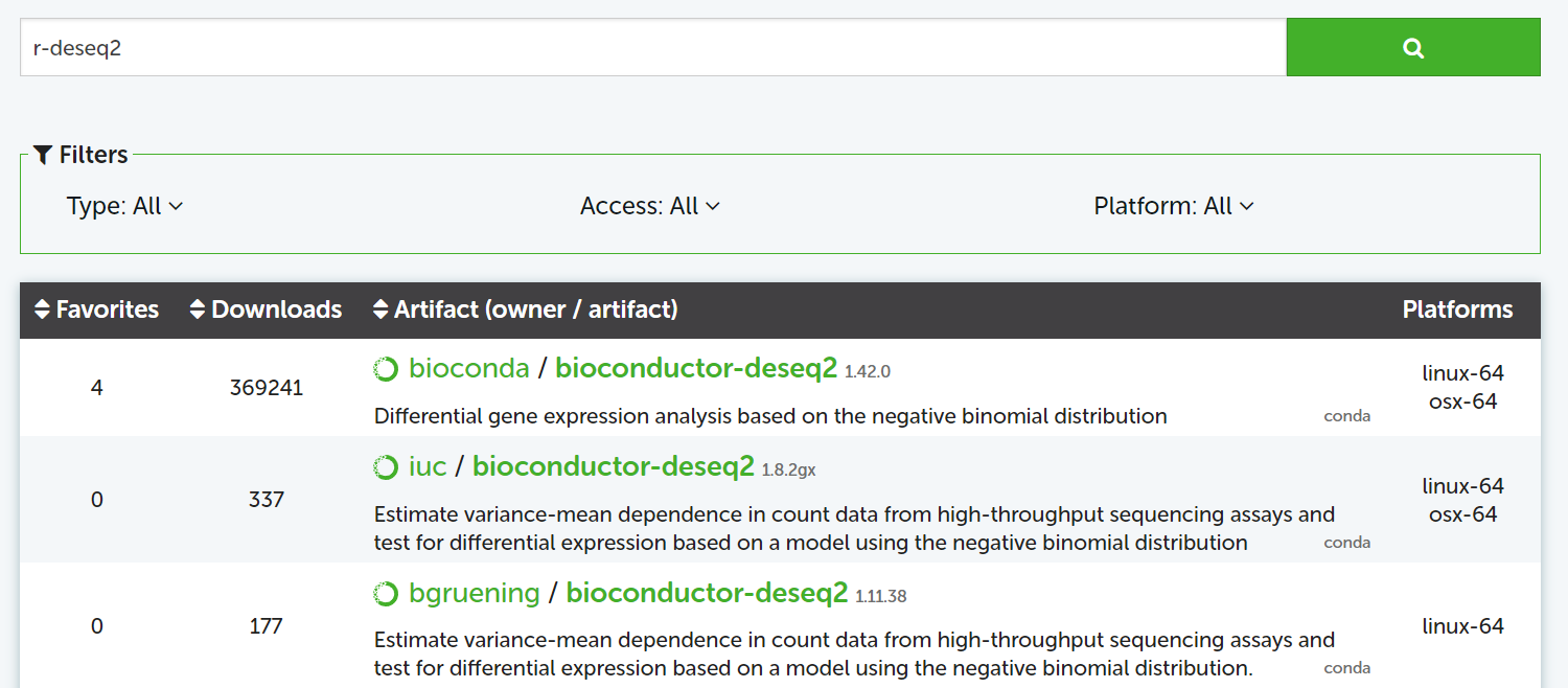 packages are archived in channels. conda-forge and bioconda include most of the packages for bioinformatics and data science.