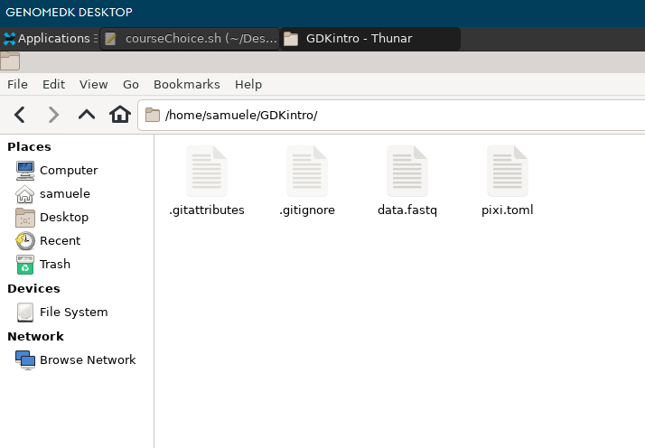 You can also run an interactive job on GenomeDK desktop. Go back to it and use the terminal to go into the GDKintro folder: