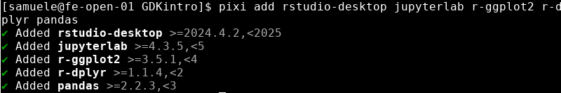 Now, run rstudio or jupyterlab (your choice!) from the pixi environment: