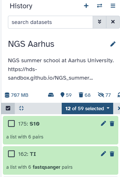 Click Next, assign a name (TI or S10). You will have completed the process. Your sequences will be collected into two elements in your history, which makes usability better.